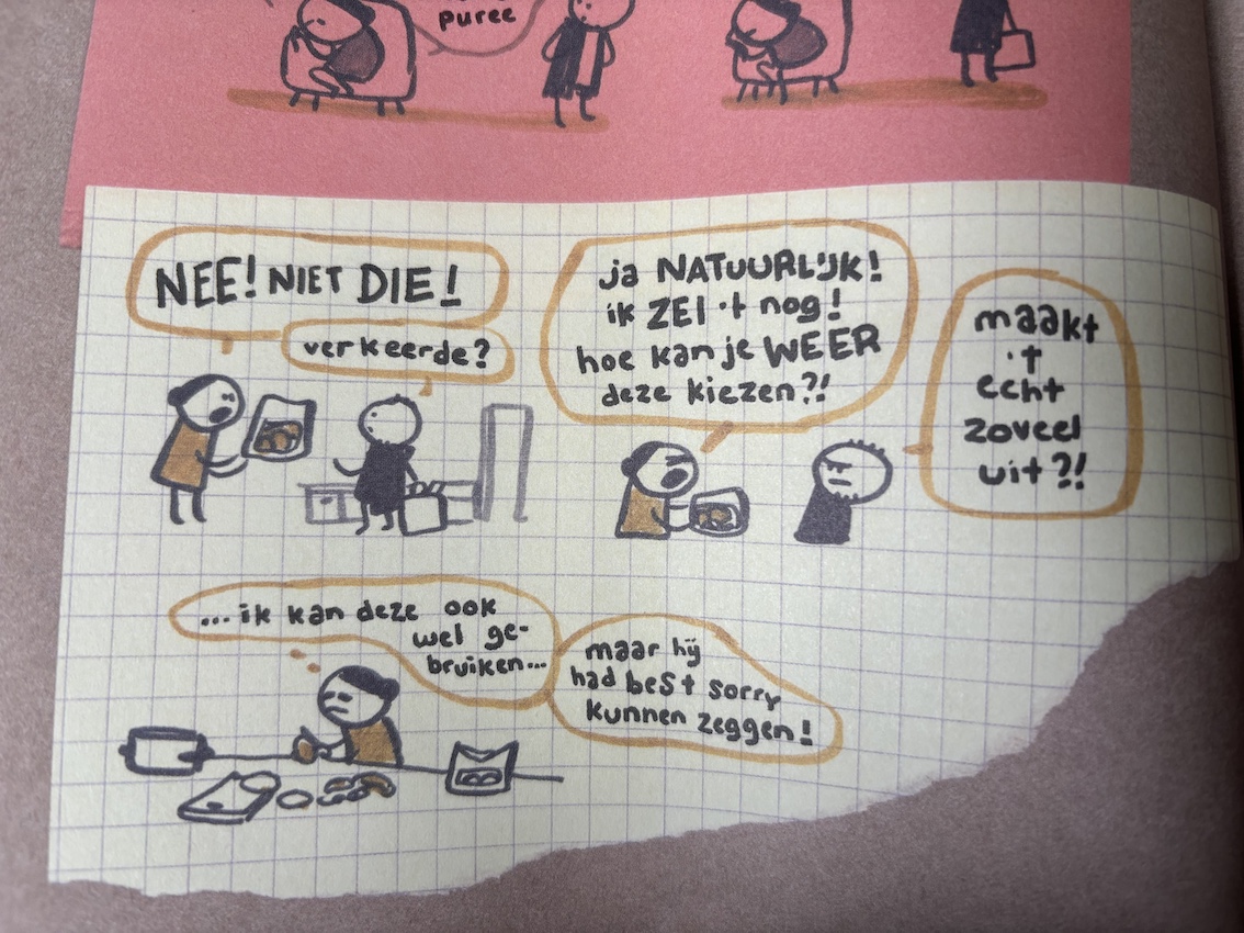Maaike laat zien in haar boek dat ze over het algemeen hele fijne en positieve reacties krijgt op haar burn-out, maar toch zijn er een aantal minder fijne interacties geweest zoals hierboven op de plaatjes te zien. Deze reacties van mensen lijken te komen uit toch een stukje onbegrip of dat iemand denkt het beste met iemand voort te hebben zonder dat dit misschien klopt. Dat laatste heeft met aannames te maken, wat een interessant uitgangspunt zou kunnen zijn om mee verder te gaan.