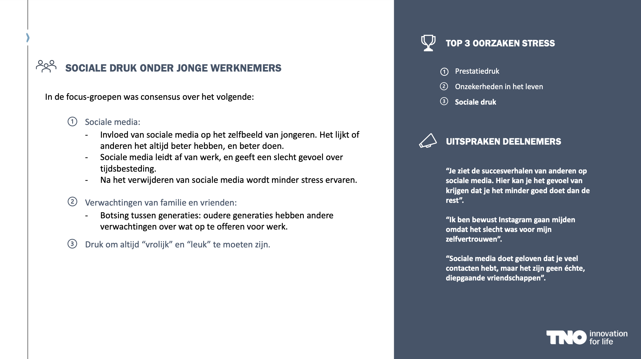 Sociale media, verwachtingen van familie en vrienden, druk om altijd vrolijk en leuk te moeten zijn spelen de grootste rol als het gaat om sociale druk als oorzaak van stress.