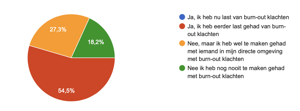 Een burn-out brengt een heleboel klachten met zich mee en komt over het algemeen van een plek van hoge maatschappelijke verwachtingen. Dit wordt alleen maar erger door mensen die dat niet begrijpen en niet respecteren zoals te zien in de groep mensen die geen burn-out heeft gehad. Ik kan deze informatie gebruiken om in mijn project kennis over te brengen om begrip te creëren.